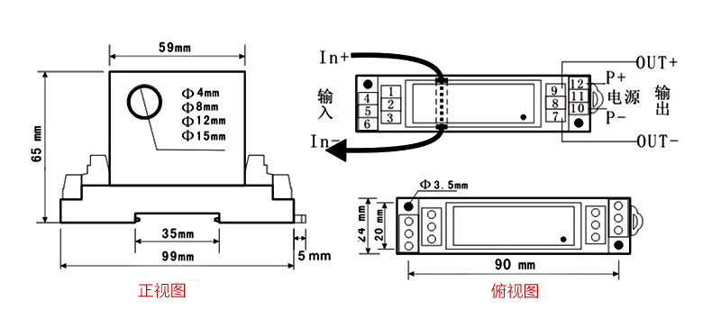 電量變送器,單相交流電流0-5A輸入,4-20mA輸出,24V供電,導(dǎo)軌安裝。