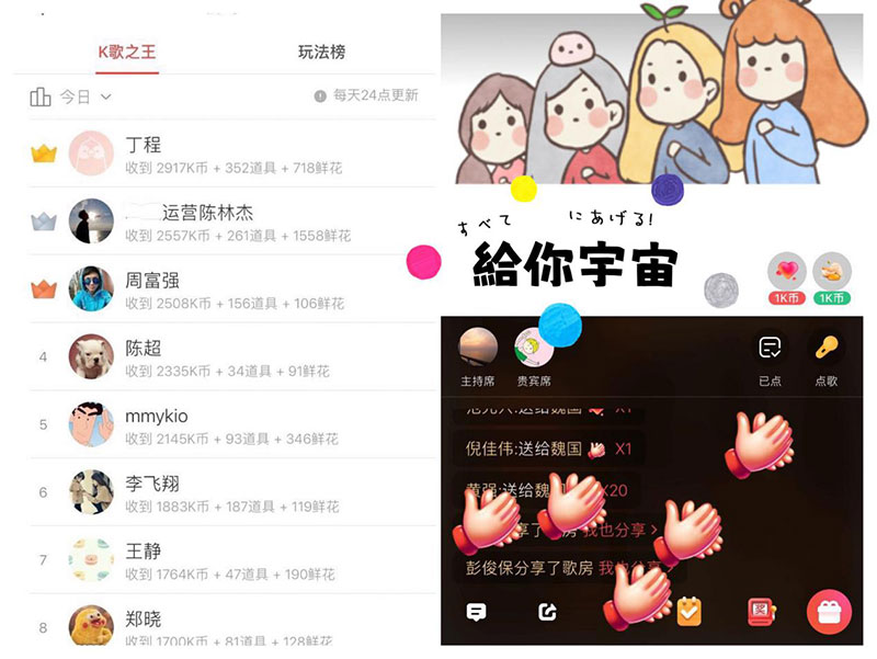 《海闊天空》、《同桌的你》、《鏗鏘玫瑰》、《小鎮(zhèn)姑娘》、《告白氣球》……這些耳熟能詳?shù)母枨诖罂兊难堇[下,被賦予了新的生命力,每一首都獨(dú)具特色。觀眾們也是化身“小粉絲”,紛紛點(diǎn)贊,送花送小禮物,為自己的偶像實力打榜。